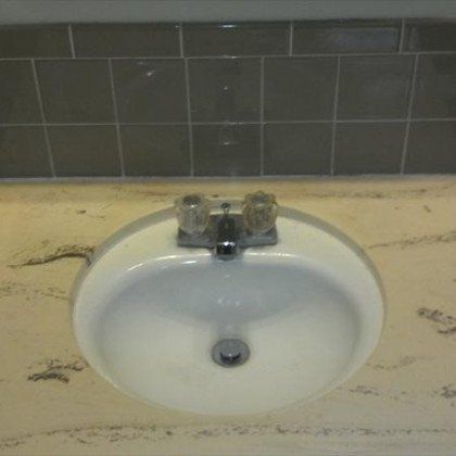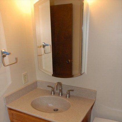 This bathroom suffered from being old and dingy, with a dated 1970's avocado green tile, a linoleum floor, extremely basic cabinetry and old cultured marble countertops. This home had 2 full bathrooms, and so we remodeled one right after the other. As soon as the grout had cured on the other bathroom, and it became usable, we moved into this bathroom, creating a functional transition for the family. In the end, we were very happy with how this bathroom turned out. It now has a clean modern look, with increased functionality from the larger vanity and the sliding tray wall cabinet.